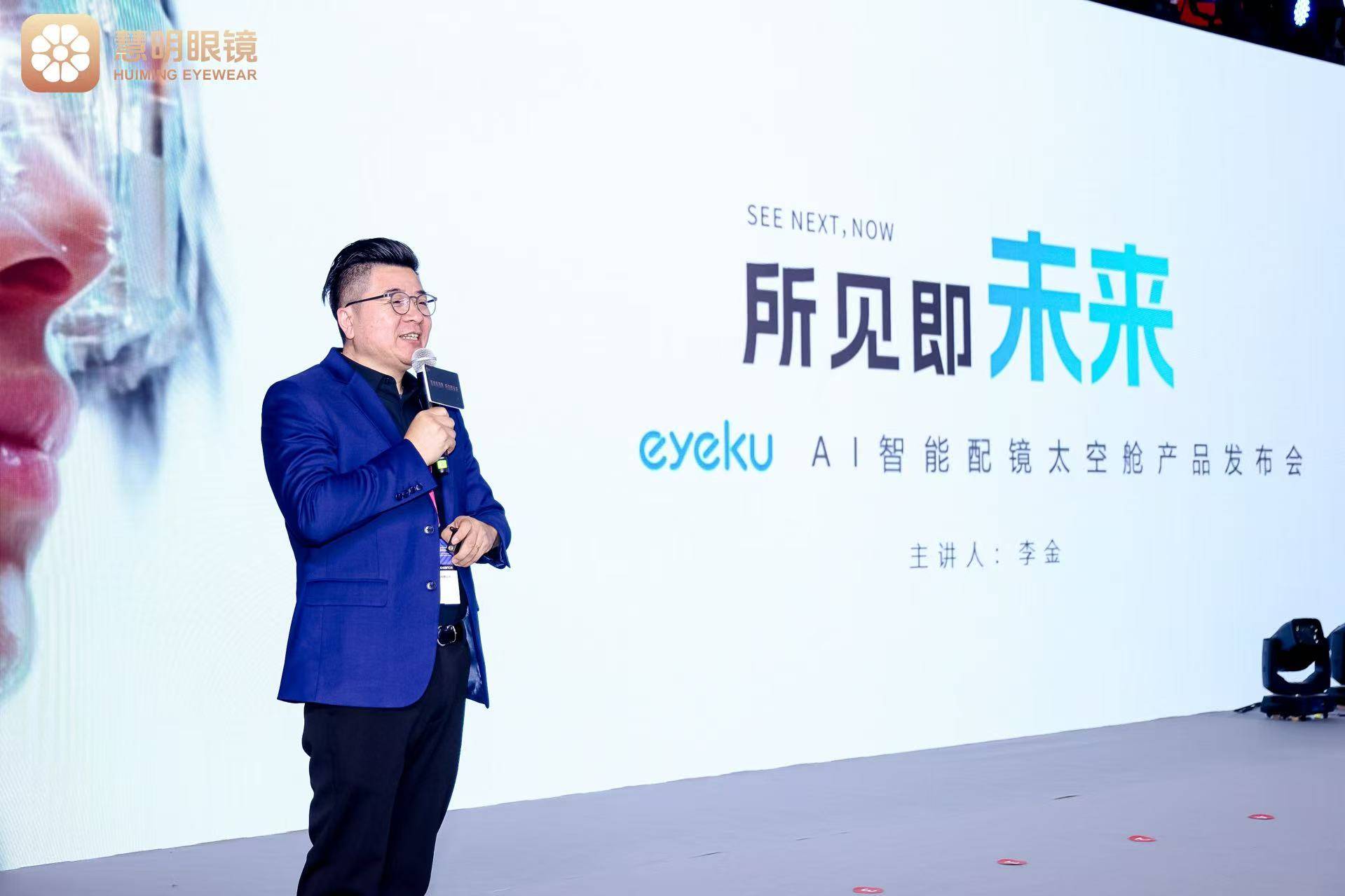 本次展会中,慧明眼镜集团正式宣布推出全新品牌eyeku,并全球首发新品——eyeku AI智能配镜太空舱。该产品彻底打破传统验光配镜依赖人工操作、各环节相互割裂的行业旧范式,构建起覆盖配镜全流程的智能闭环,成为视光行业向“全程智能化”转型的标志性突破。