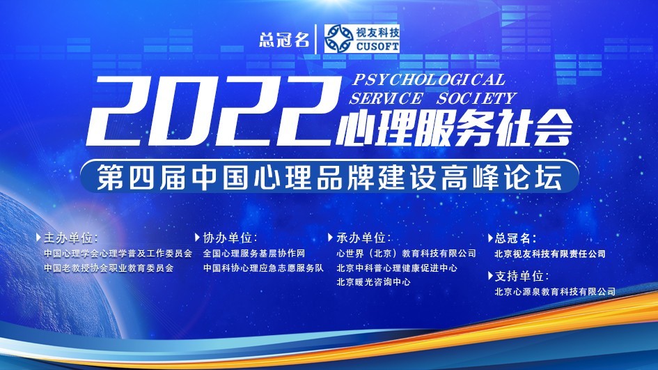 “2022第四届中国心理品牌建设高峰论坛”将于7月30日-31日举办,本次论坛由中国心理学会心理学普及工作委员会、中国老教授协会职业教育委员会共同主办,全国心理服务基层协作网、中国科协心理应急志愿服务队协办,北京视友科技有限责任公司总冠名,心世界(北京)教育科技有限公司、北京中科普心理健康促进中心、北京暖光咨询中心承办,北京心源泉教育科技有限公司支持,旨在继续发挥行业生态链接能力,整合心理行业、产品与技术服务商,供应链上下游企业,展示心理行业发展新生态,有效链接行业资源,促进心理品牌成熟成型,推动心理服务落实基层。本次论坛在后疫情时代召开,无疑是一剂“心理良药”,能为当今社会的心理产业发展交出一份满意的答卷。