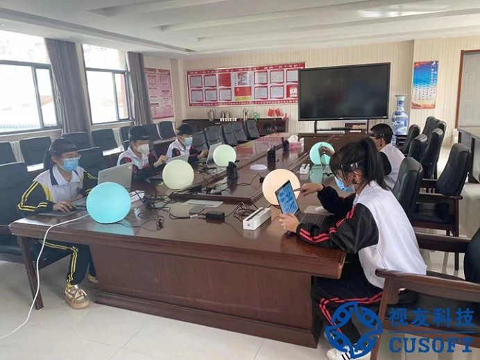 (某地学生使用视友科技旗下便携式脑波仪、脑波灯等设备)